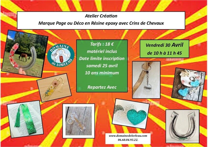 atelier : 30.4.26 - création marque page déco en résine epoxy avec crins de chevaux