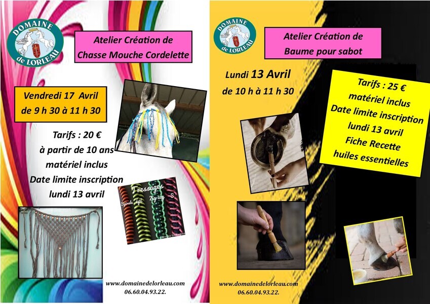 le 17 avril de 9 h 30 à 11 h 30 à 20€ => création de chasse mouche cordelette ( à partir de 10 ans)
